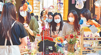 5月2日,上海南京路步行街六合路上近百米長的攤位一字排開,吸引逛街的市民前來觀看購買。