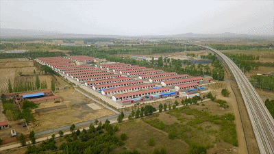 △從空中俯瞰,搬遷居民們在坊城新村住的是獨門獨院的新房。(總臺央視記者康曉宇拍攝)