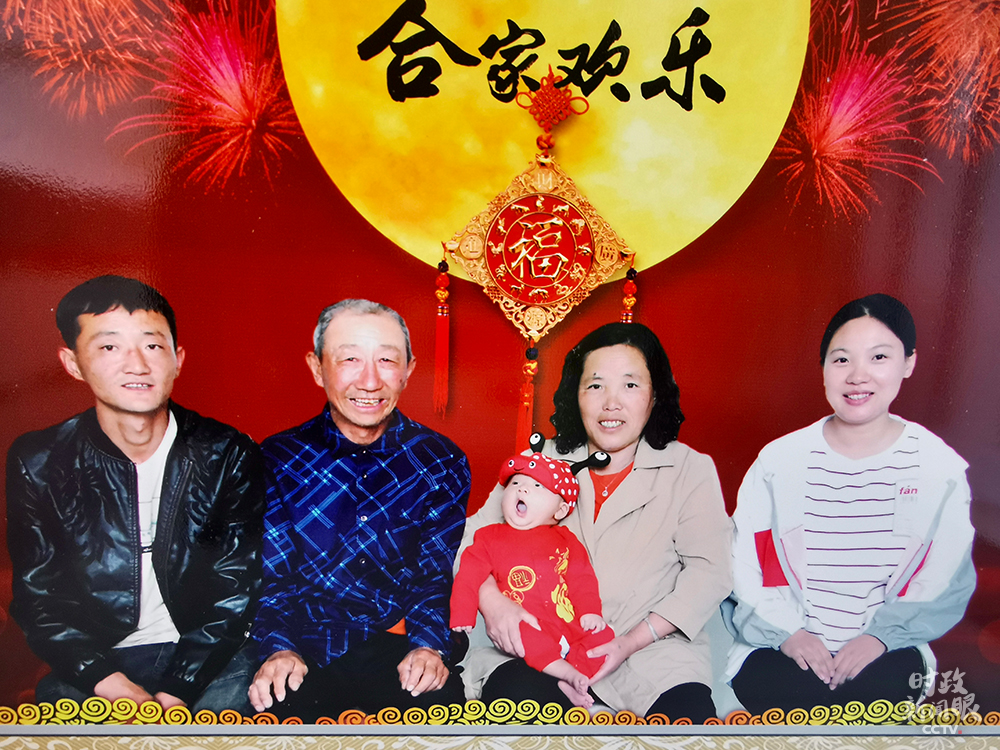 △這是今年4月,白利軍的兒子過滿月當(dāng)天拍攝的全家福。(總臺央視記者史偉拍攝)