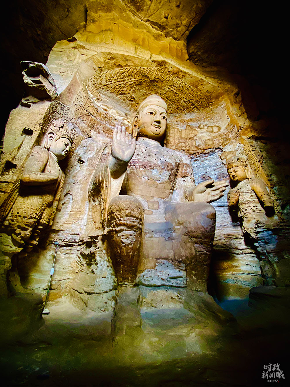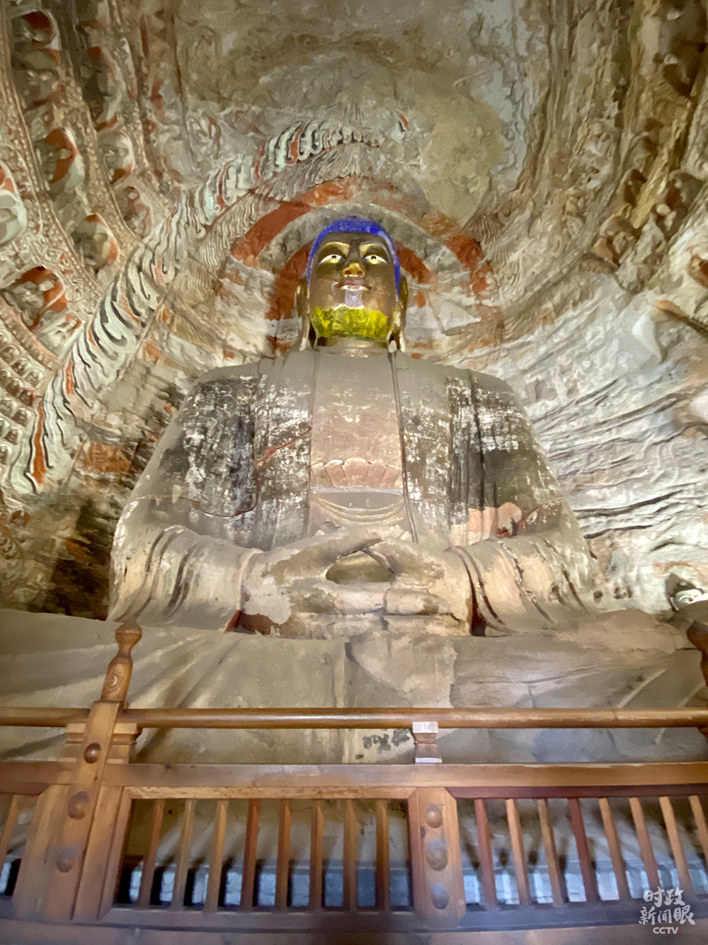 △第3窟是云岡最大的洞窟,又名“靈巖寺”,屬于中期石窟。主尊阿彌陀佛高10米。(總臺央視記者李輝拍攝)