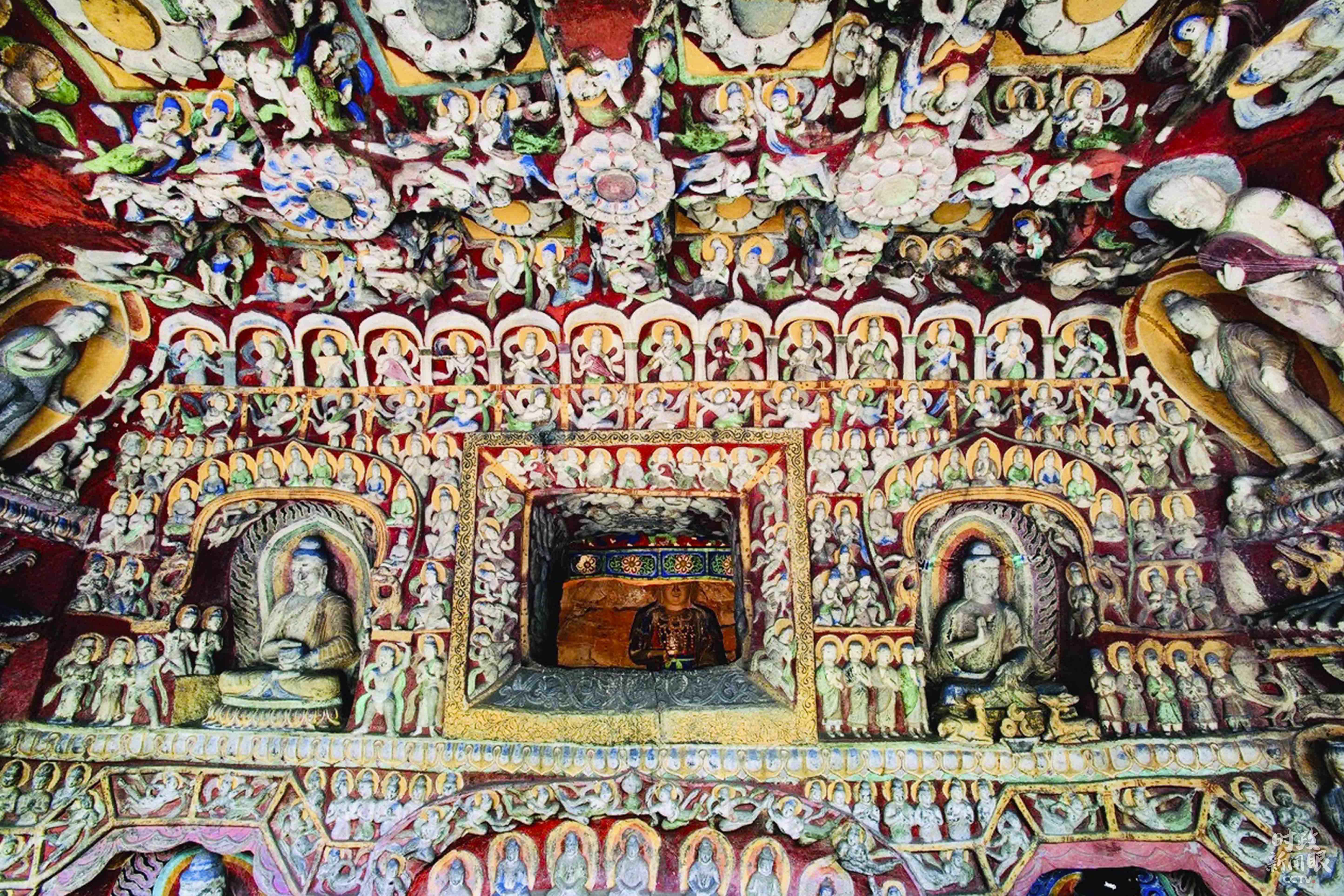 云岡石窟中期石窟則以精雕細琢、裝飾華麗著稱于世。晚期窟室規(guī)模雖小,但人物形象清瘦俊美、比例適中,是中國北方石窟藝術(shù)的榜樣和“瘦骨清像”的源起。