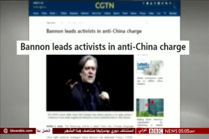英國廣播公司阿語新聞頻道(BBC Arabic)5月4日轉發《新聞聯播》中關于《口出狂言的反華急先鋒班農唯恐天下不亂》的口播畫面,并引用銳評英文版報道稱:“中國中央電視臺播發評論指出,美國面臨的最大危險不是新冠病毒,而是特朗普政府內部的極右民粹分子;他們的‘甩鍋’行為是將美國應對疫情不力的責任轉嫁給中國;其所謂的‘追責索賠’毫無依據,目的是逃避自身的責任。”