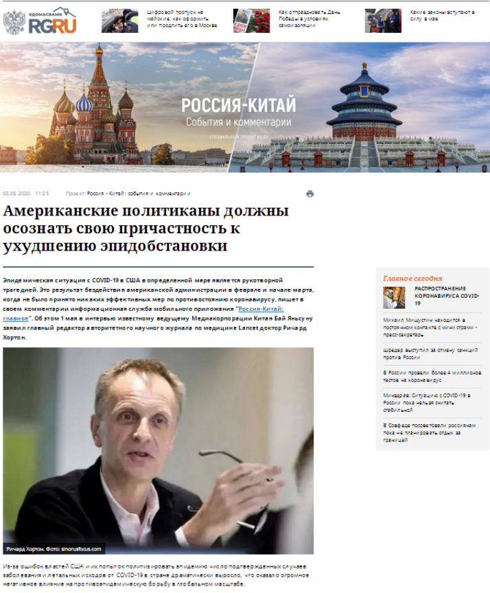 5月3日,《俄羅斯報》官網刊發題為《美國政客應為全球疫情擴散負責》的文章。文章稱,團結和合作是應對疫情的最有力武器。如果美國某些政客罔顧這一科學規律,那么必將淪為歷史的罪人。