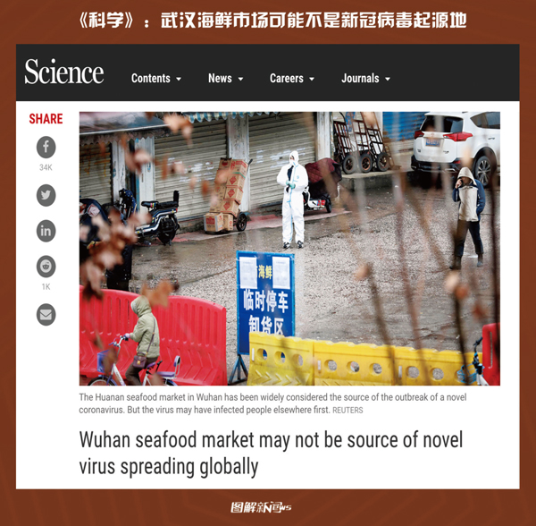 2020年1月26日,《科學》雜志援引美國喬治敦大學傳染病專家丹尼爾·盧西的觀點指出,武漢海鮮市場可能不是新冠病毒起源地。 人民網供圖 王政淇/制圖