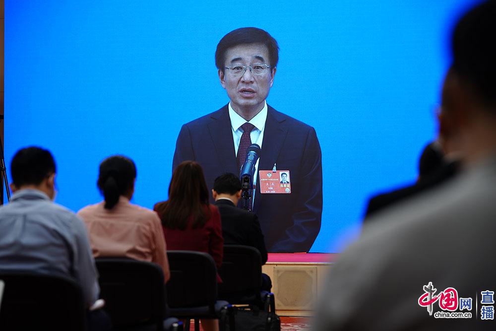 在梅地亞兩會(huì)新聞中心多功能廳分會(huì)場(chǎng),全國(guó)政協(xié)委員,中國(guó)醫(yī)學(xué)科學(xué)院和中國(guó)工程院呼吸與危重癥醫(yī)學(xué)臨床醫(yī)生王辰通過(guò)網(wǎng)絡(luò)視頻方式接受媒體采訪。中國(guó)網(wǎng) 楊佳攝影