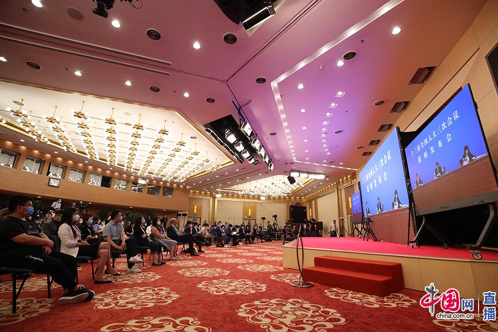5月21日21時40分,十三屆全國人大三次會議在人民大會堂新聞發布廳舉行新聞發布會,圖為發布會現場。中國網記者 楊佳 攝