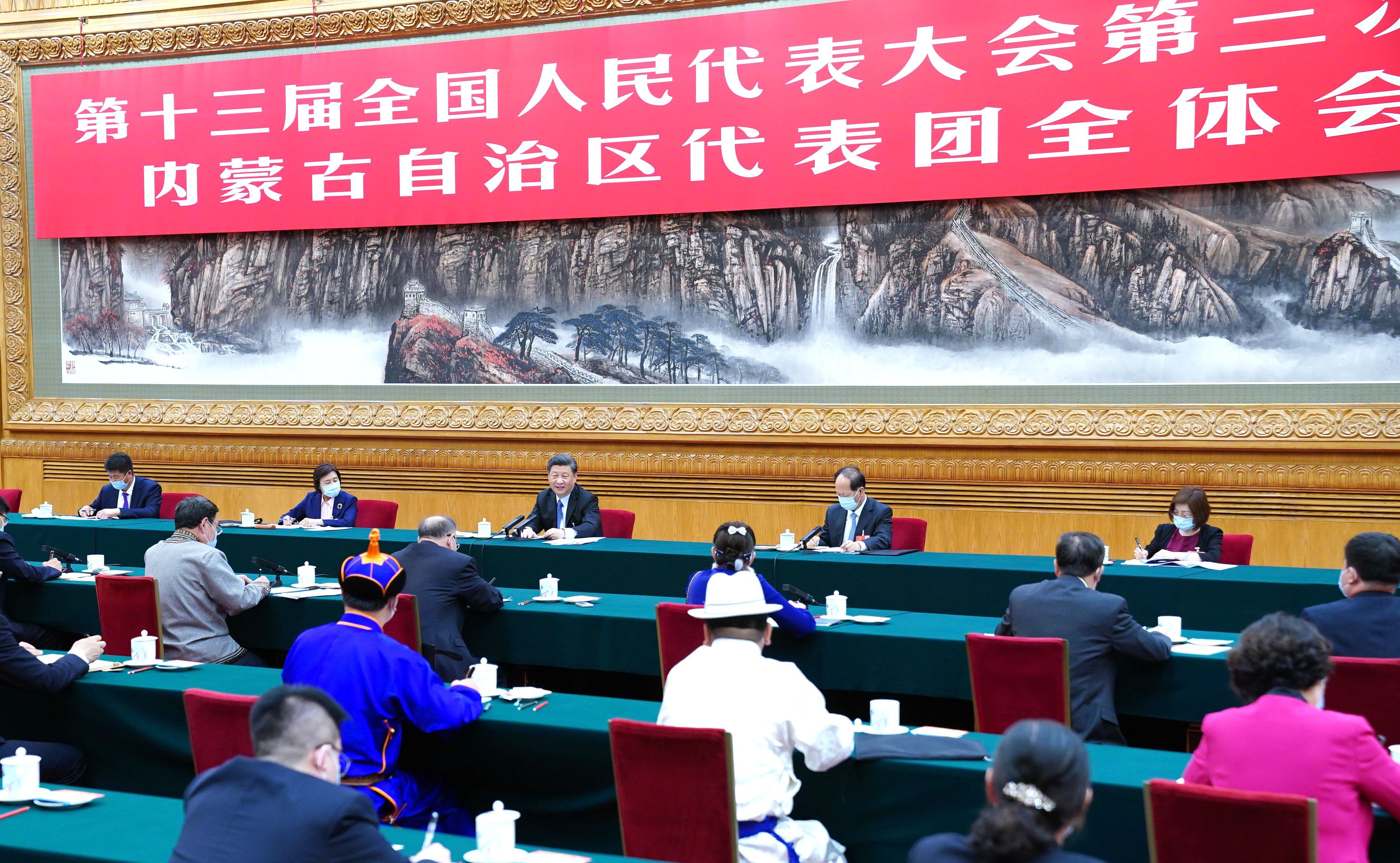 在認(rèn)真聽取大家發(fā)言后,習(xí)近平作了發(fā)言。他首先表示完全贊成政府工作報(bào)告,充分肯定內(nèi)蒙古一年來的工作,希望內(nèi)蒙古的同志大力弘揚(yáng)“蒙古馬精神”,堅(jiān)決貫徹黨中央決策部署,堅(jiān)持以人民為中心的發(fā)展思想,堅(jiān)持穩(wěn)中求進(jìn)工作總基調(diào),堅(jiān)持新發(fā)展理念,堅(jiān)決打好三大攻堅(jiān)戰(zhàn),扎實(shí)做好“六穩(wěn)”工作,全面落實(shí)“六!比蝿(wù),堅(jiān)決克服疫情帶來的不利影響,確保完成決勝全面建成小康社會(huì)、決戰(zhàn)脫貧攻堅(jiān)目標(biāo)任務(wù),在新時(shí)代全面建設(shè)社會(huì)主義現(xiàn)代化國(guó)家征程上書寫內(nèi)蒙古發(fā)展新篇章。