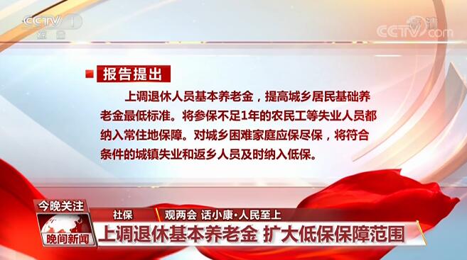 社保:上調退休基本養老金 擴大低保保障范圍