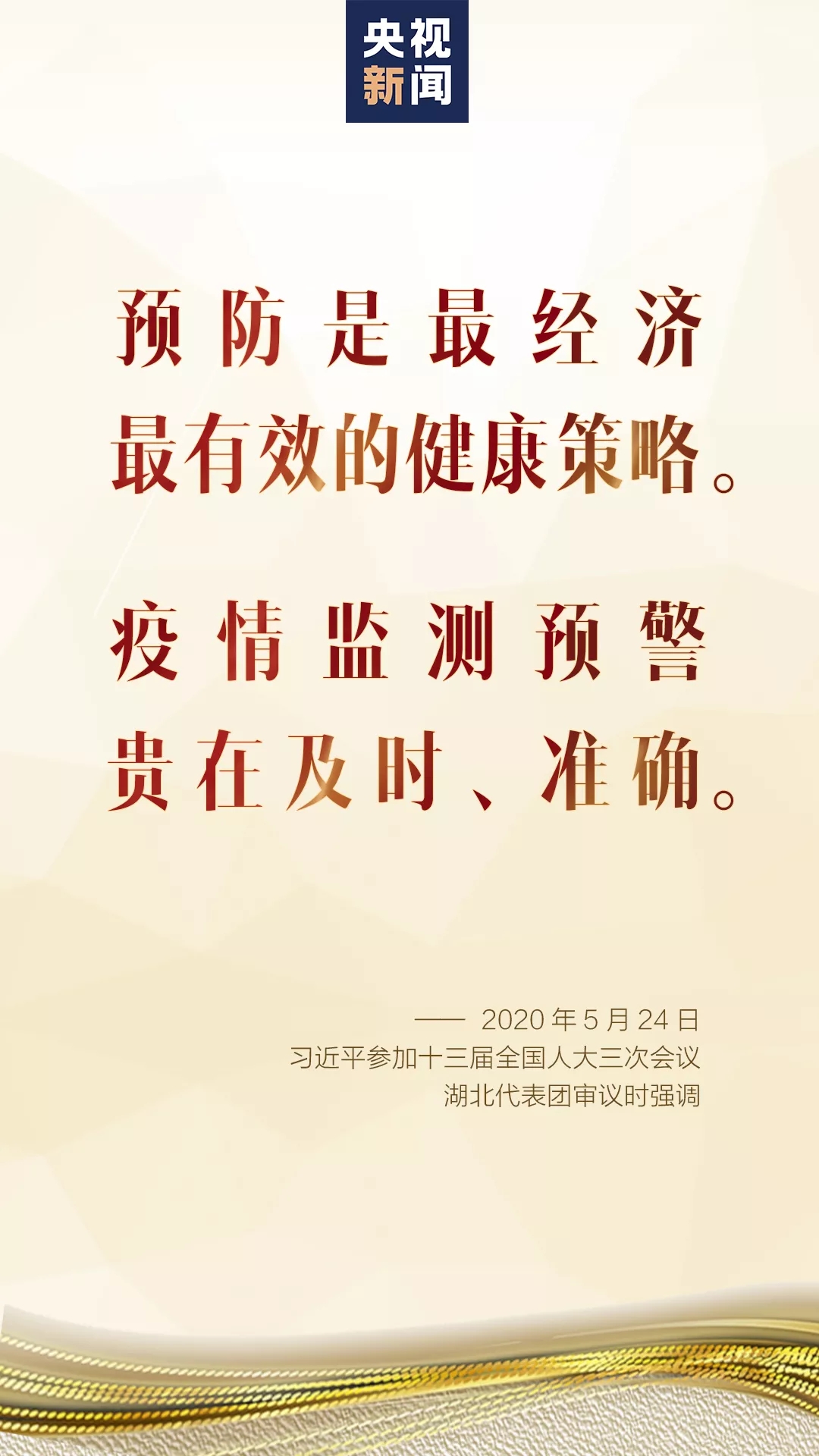習近平24日下午在參加十三屆全國人大三次會議湖北代表團審議時強調,防范化解重大疫情和突發公共衛生風險,事關國家安全和發展,事關社會政治大局穩定。