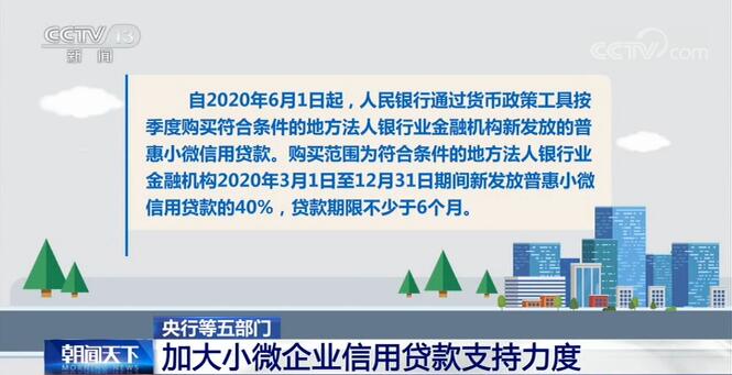 央視網消息:近日,中國人民銀行、銀保監會、財政部等五部門發布關于加大小微企業信用貸款支持力度的通知。自2020年6月1日起,人民銀行通過貨幣政策工具按季度購買符合條件的地方法人銀行業金融機構新發放的普惠小微信用貸款。購買范圍為符合條件的地方法人銀行業金融機構2020年3月1日至12月31日期間新發放普惠小微信用貸款的40%,貸款期限不少于6個月。