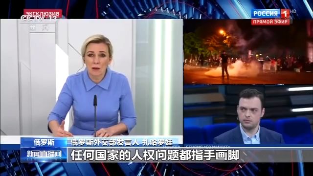 扎哈羅娃在節目中表示,一直以來,美國政客試圖讓整個世界相信,美國的內部問題都是由外部因素引發的,尤其是俄羅斯。此次全美爆發抗議活動,美國政客再次企圖將責任“甩鍋”給俄羅斯。扎哈羅娃呼吁美國停止這樣的伎倆。扎哈羅娃還表示,美國政府顯然沒有處理好當前國內的人權問題,因此他們也無權對他國指手畫腳。