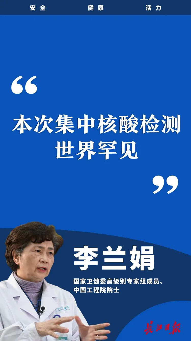李蘭娟說,她2月初去武漢,前天又到了武漢,專門了解此次集中核酸檢測排查工作,有很多感觸。