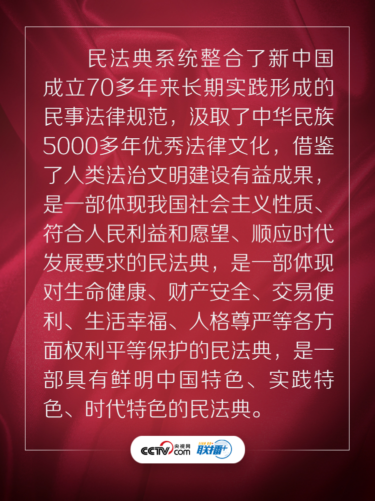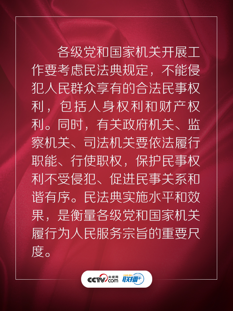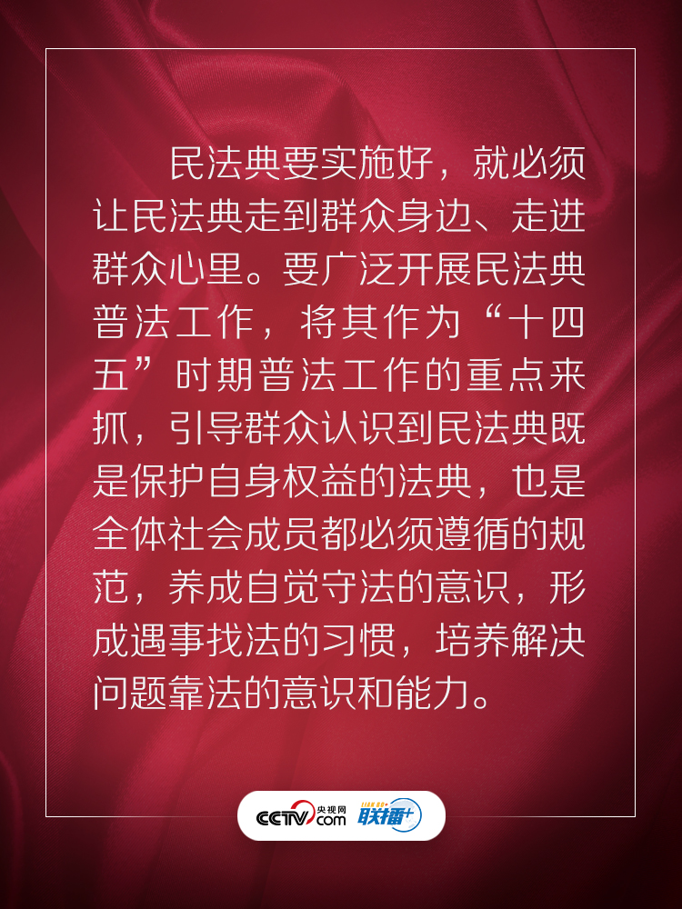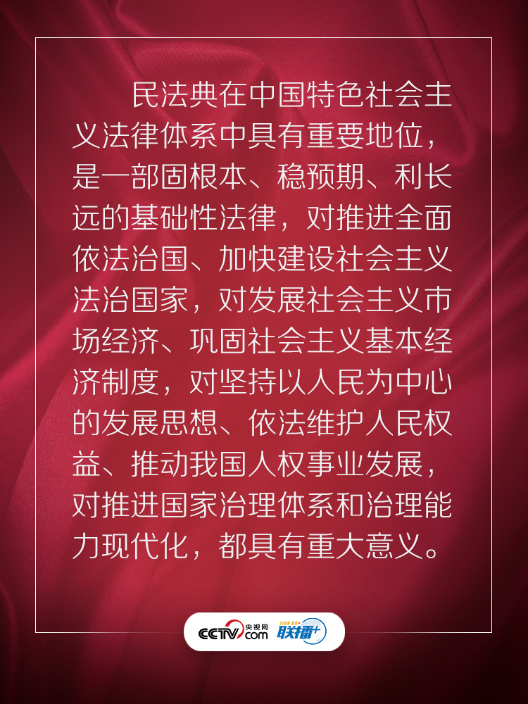 聯播+“實施好民法典是堅持以人民為中心、保障人民權益實現和發展的必然要求。”