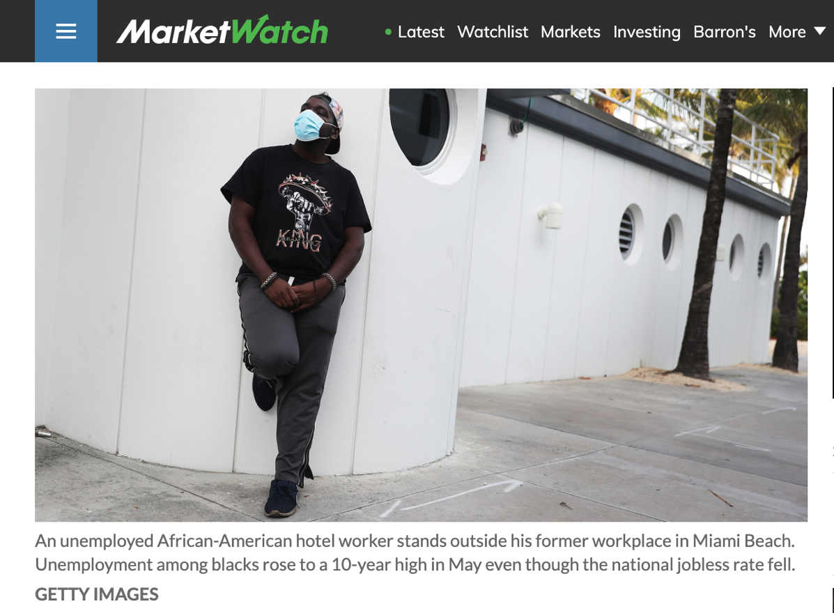 隨著過去幾個(gè)月內(nèi)美國新冠肺炎疫情的暴發(fā),圍繞種族間貧富差距和區(qū)別對(duì)待的問題也在不斷放大,從而導(dǎo)致了矛盾激化。最為直觀的就是,今年5月,非裔工人的失業(yè)率已飆升至16.8%,達(dá)到了2010年初以來的最高水平。非裔家庭本就資產(chǎn)積累較少,一旦失業(yè),則意味著生活如履薄冰。