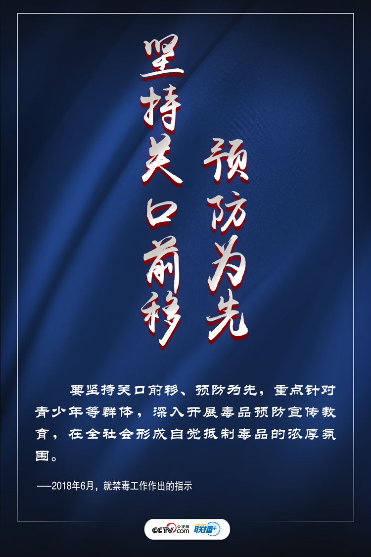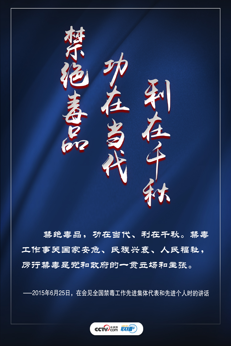 禁毒工作事關國家安危、民族興衰、人民福祉。近年來,習近平總書記秉持以人民為中心的發展思想,多次就禁毒工作發表重要講話,將全民禁毒提升至新的高度。央視網《聯播+》特進行梳理,與您一起學習領會,提高禁毒意識,堅定打贏禁毒人民戰爭的信心。