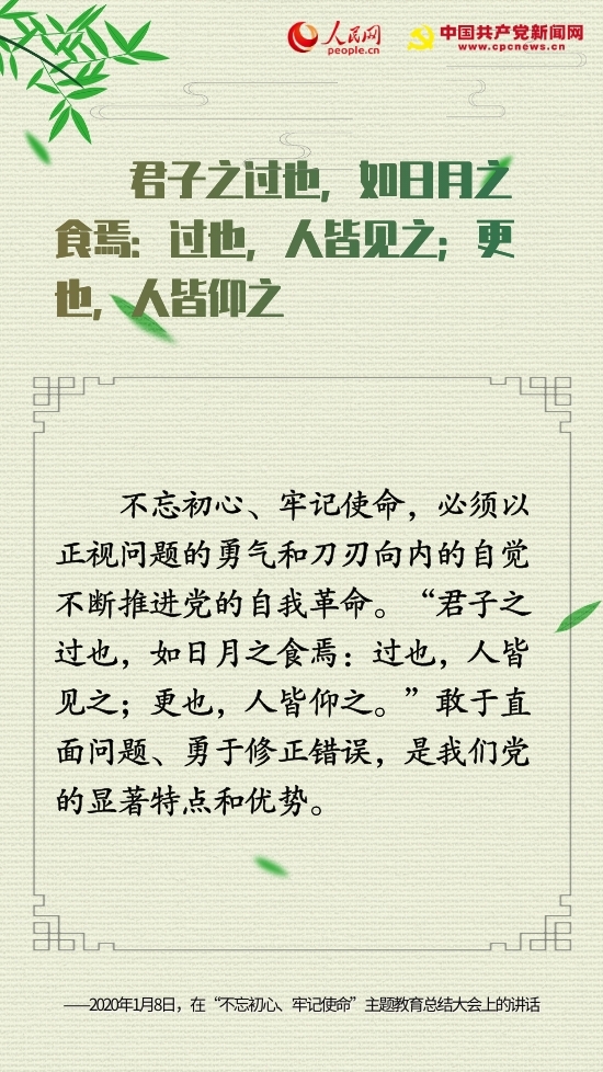 以古為鏡、旁征博引,習近平總書記多次在論述中國共產黨人的初心使命時引用古典名句,并賦予它們鮮活的當代價值與意義,意境深遠、引人入勝。