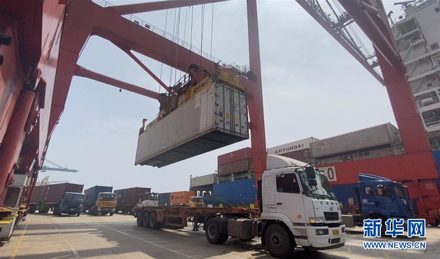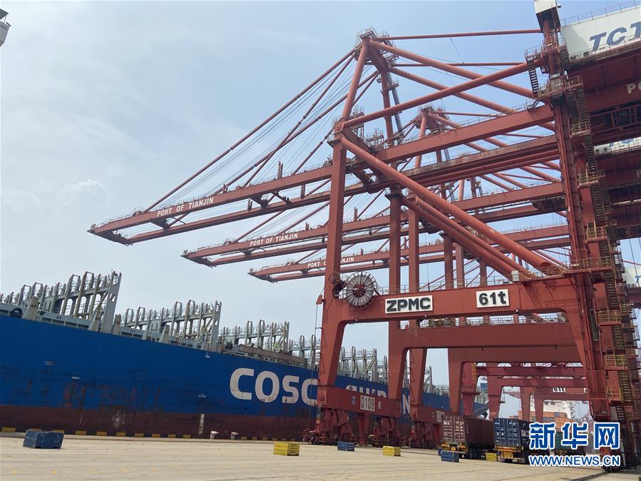 貨車在天津港集裝箱碼頭等待直提貨物(8月4日攝)。 新華社記者 張宇琪 攝