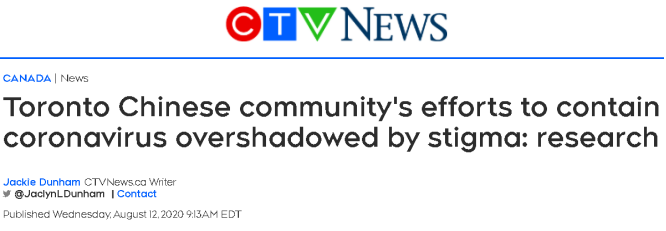 加拿大最大的私人電視機構(gòu)——加拿大電視(CTV)當(dāng)?shù)貢r間12日發(fā)表了一篇報道,題為《研究顯示:多倫多華人社區(qū)控制新冠病毒的努力被污名的陰影籠罩》,報道援引一家研究機構(gòu)的結(jié)果指出,多倫多華人社區(qū)在今年年初為遏制新冠病毒傳播而進行的努力,在很大程度上被當(dāng)時的污名和對華仇視所掩蓋。這個報道引起了很多華人的共鳴。自從疫情暴發(fā)以來,華人積極加強自我防護,因此感染新冠病毒的人口比例非常低。與此同時,華人則通過各種途徑從國內(nèi)購買口罩積極捐獻給加拿大社會各界。可以說,華人在抗擊新冠疫情方面為所有族群做出了榜樣。然而,一個令人擔(dān)憂的事實卻是,華人是這場疫情當(dāng)中唯一背負了污名的族群。