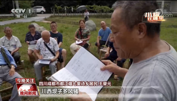 四川成都市都江堰七里詩鄉居民 毛強:對對對,因為我們這些農民就是閑下來的時候啊,他沒事做的時候就是會創作一些詩歌,還有詩詞之類的。