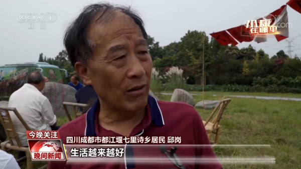 成都市都江堰七里詩鄉居民 邱崗:農民的生活水平提高了,生活越來越好。所以我們更多的老百姓要把他自己熱愛生活,熱愛家鄉的這么一個情感,通過他的詩歌創作來得到表達。