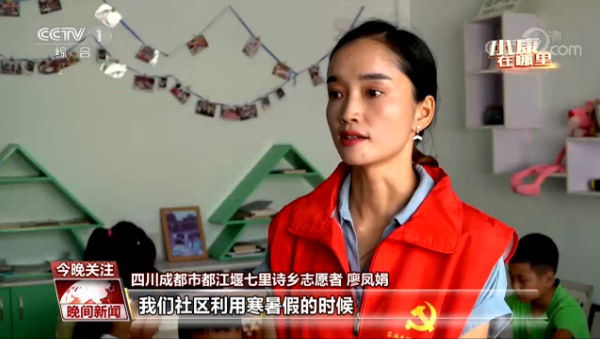 四川成都市都江堰七里詩鄉志愿者 廖鳳娟:我們社區利用寒暑假的時候,召集孩子們到咱們兒童之家學習詩歌朗誦,從小培養他們對詩歌的興趣,這也是對咱們七里詩鄉對文化的一個傳承。