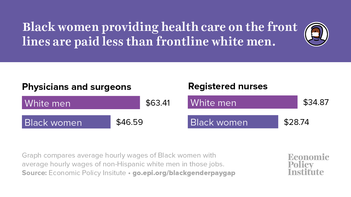 △身處抗疫一線的非洲裔女性醫(yī)生和護士,獲得的時薪少于白人男性 圖片來源:經(jīng)濟政策研究所