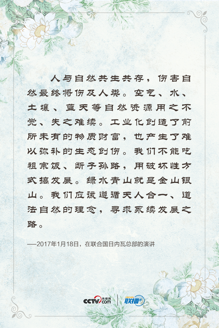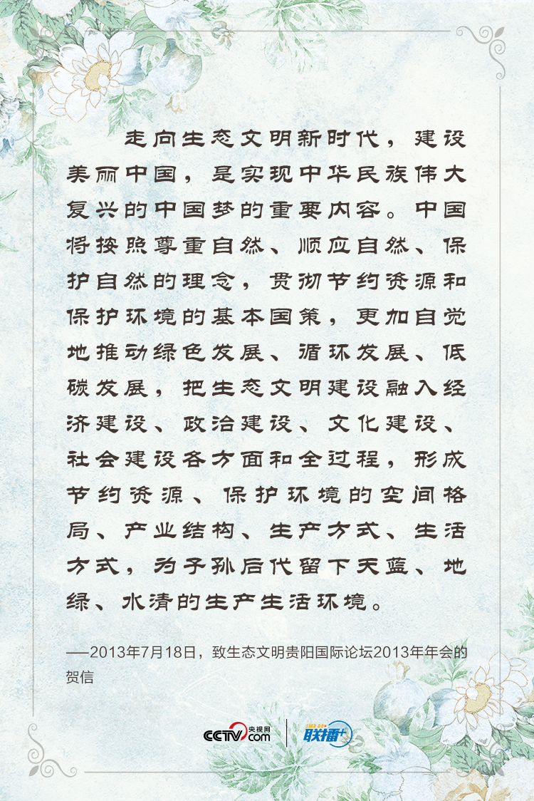 聯播+“綠水青山就是金山銀山”,“我們要倡導綠色、低碳、循環、可持續的生產生活方式”,“建設天藍、地綠、水清的美麗中國,讓人民切實感受到發展帶來的生態效益”。