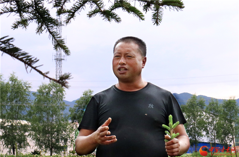 隨后,他多方學(xué)習(xí)考察,積極聯(lián)系對接,成立了樹苗栽培合作社,動員號召了86戶村民把貧瘠的土地拿出來種植云杉樹苗。