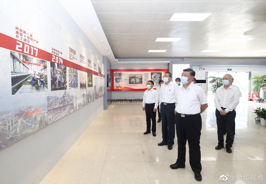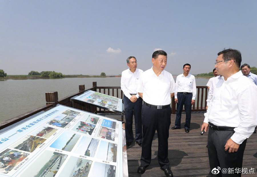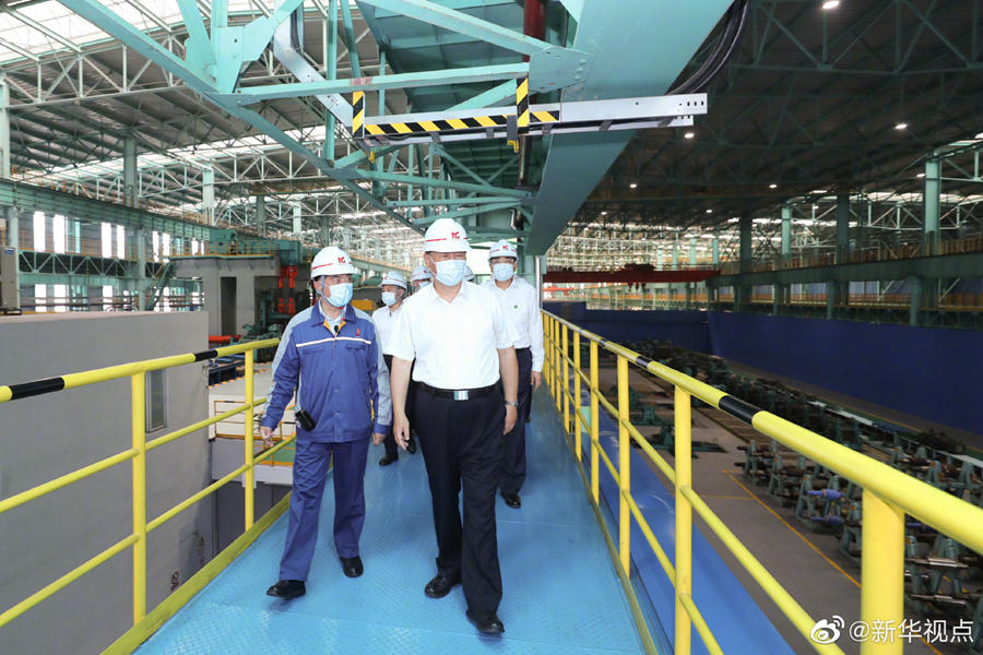 習近平總書記19日上午在安徽省馬鞍山市考察調研。他首先來到薛家洼生態園,實地察看長江水勢水情、岸線綜合整治和生態環境保護修復等情況。隨后,習近平前往中國寶武馬鋼集團,走進生產車間,了解企業復工復產和經營情況。(文字記者:張曉松攝影記者:鞠鵬 王曄)