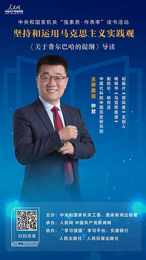 中國共產黨新聞網北京8月20日電 (謝磊 曹淼)日前,2020年中央和國家機關“強素質·作表率”讀書活動舉辦第三講,圍繞“重溫馬克思主義經典,深化習近平新時代中國特色社會主義思想學習”這一主題,邀請中國社會科學院中國歷史研究院副院長、研究員鐘君做客講堂,以“堅持和運用馬克思主義實踐觀”為主題,導讀《關于費爾巴哈的提綱》。