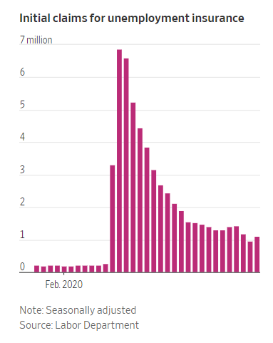 △彭博社報(bào)道,美國(guó)首次申請(qǐng)失業(yè)救濟(jì)人數(shù)意外增至100萬(wàn)以上。