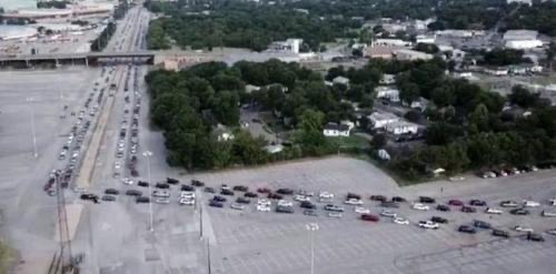 △《每日郵報(bào)》報(bào)道,等待領(lǐng)取救濟(jì)食物的車輛排起了長(zhǎng)隊(duì)。
