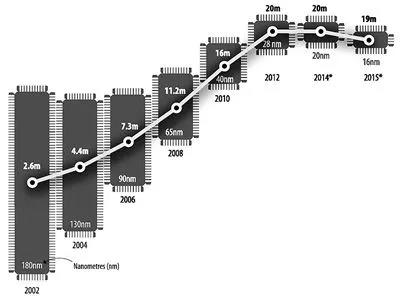 為了衡量芯片的技術進步,行業內用了“制程”這個概念,隨著芯片上晶體管的尺寸減小,制程也就越小,芯片上能容納的晶體管數量就越多,也就是說制程越小,芯片的性能就越好。