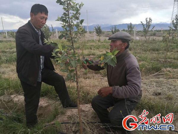 一大早,伊犁州伊寧縣武功鄉(xiāng)北山坡林果基地里就來了一個人,他在果樹間穿梭往返,左看看右看看,十分仔細。