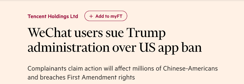 外媒:美國微信用戶向特朗普政府提起訴訟!