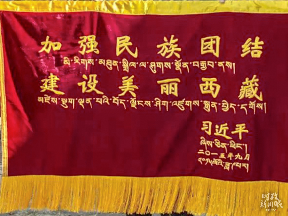 △2015年,在西藏自治區(qū)成立50周年慶祝大會上,西藏300多萬各族兒女收到習(xí)近平題詞的“加強(qiáng)民族團(tuán)結(jié) 建設(shè)美麗西藏”賀匾。