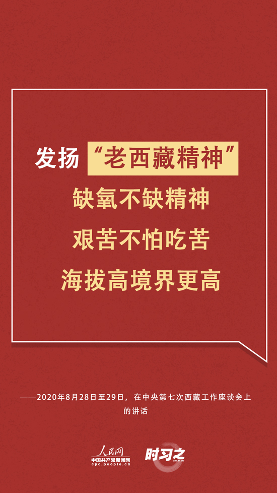 “缺氧不缺精神、艱苦不怕吃苦、海拔高境界更高,在工作中不斷增強責任感、使命感,增強能力、錘煉作風。”習近平在座談會上再次為發揚“老西藏精神”作出注解。同時,習近平也提出要關心愛護西藏干部職工,完善好、落實好工資收入、住房、就醫、子女入學、退休安置等各方面支持政策,重視健康保障工作。