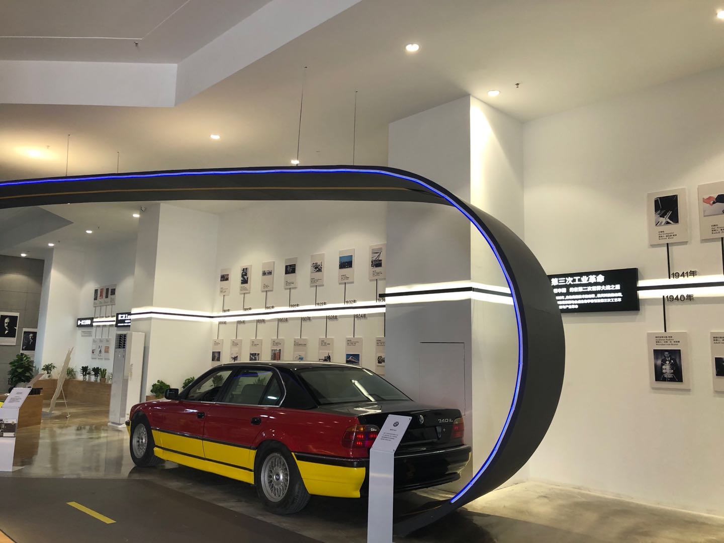 究竟是怎樣的體驗呢?比如說在德國國家館,一輛于2001年停產的寶馬740躍然于眼前,懷舊的車型,復古的紅黃拼色,在這個區域,你可以從汽車文化看起,再到縱覽整個德國的工業革命。