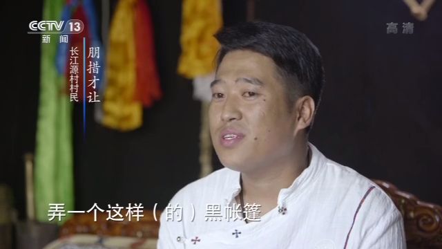 長江源村村民 朋措才讓:1376就是心想事成的意思,藏語叫吉三東周。就是想自己開一個(gè)這樣的店,我自己想弄一個(gè)這樣黑賬篷,就是我們藏族古老的傳統(tǒng)的一種文化。