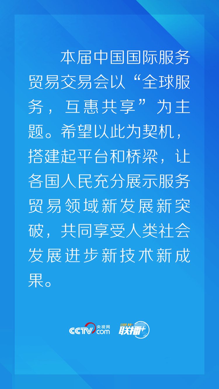 當前,全球范圍疫情尚未得到全面控制,各國都面臨著抗疫情、穩經濟、保民生的艱巨任務。在這一背景下,中國克服重重困難,舉辦這樣一場重大國際經貿活動,就是要同大家攜手努力、共克時艱,共同促進全球服務貿易發展繁榮,推動世界經濟盡快復蘇。
