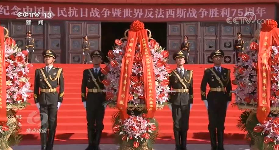 9月3日上午,習近平等黨和國家領導人同首都各界代表一起,在中國人民抗日戰爭紀念館向抗戰烈士敬獻了花籃。