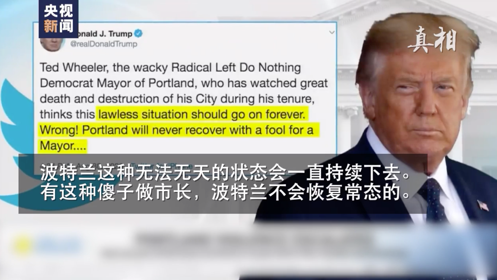 特朗普連發數條推特大罵波特蘭民主黨籍市長。