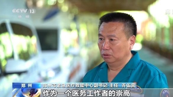 鄭州市緊急醫療救援中心副書記 主任 喬伍營:有一天我們轉運一個80多歲的老奶奶,(說)謝謝你們醫務工作者,你們挽救了我們第二次生命,況且你們跑這么遠來救我們,我真的謝謝你們,給我們鞠了一躬,這一躬,讓我們隊員淚水都出來了,讓我們深深感覺到,作為一個醫務工作者的崇高。