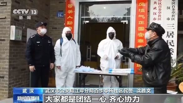 武漢市公安局江岸分局百步亭所社區民警 沈勝文:整個防疫的時間,戰線長,時間跨度長,但是沒有一名黨員,沒有一名社區群干,沒有一名社區民警,沒有一名社區保安打退堂鼓。大家都是團結一心、齊心協力地投入到抗疫工作崗位當中,最后我們團結就是力量,戰勝了冠狀病毒。
