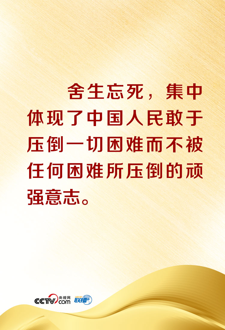 “在這場同嚴(yán)重疫情的殊死較量中,中國人民和中華民族以敢于斗爭、敢于勝利的大無畏氣概,鑄就了生命至上、舉國同心、舍生忘死、尊重科學(xué)、命運(yùn)與共的偉大抗疫精神。”總書記還在講話中特別概括、闡釋了偉大抗疫精神,并深刻指出,偉大抗疫精神,同中華民族長期形成的特質(zhì)稟賦和文化基因一脈相承,是愛國主義、集體主義、社會(huì)主義精神的傳承和發(fā)展,是中國精神的生動(dòng)詮釋,豐富了民族精神和時(shí)代精神的內(nèi)涵。央視網(wǎng)《聯(lián)播+》欄目特對相關(guān)內(nèi)容進(jìn)行梳理,與您共同在偉大精神中感受偉大的力量!