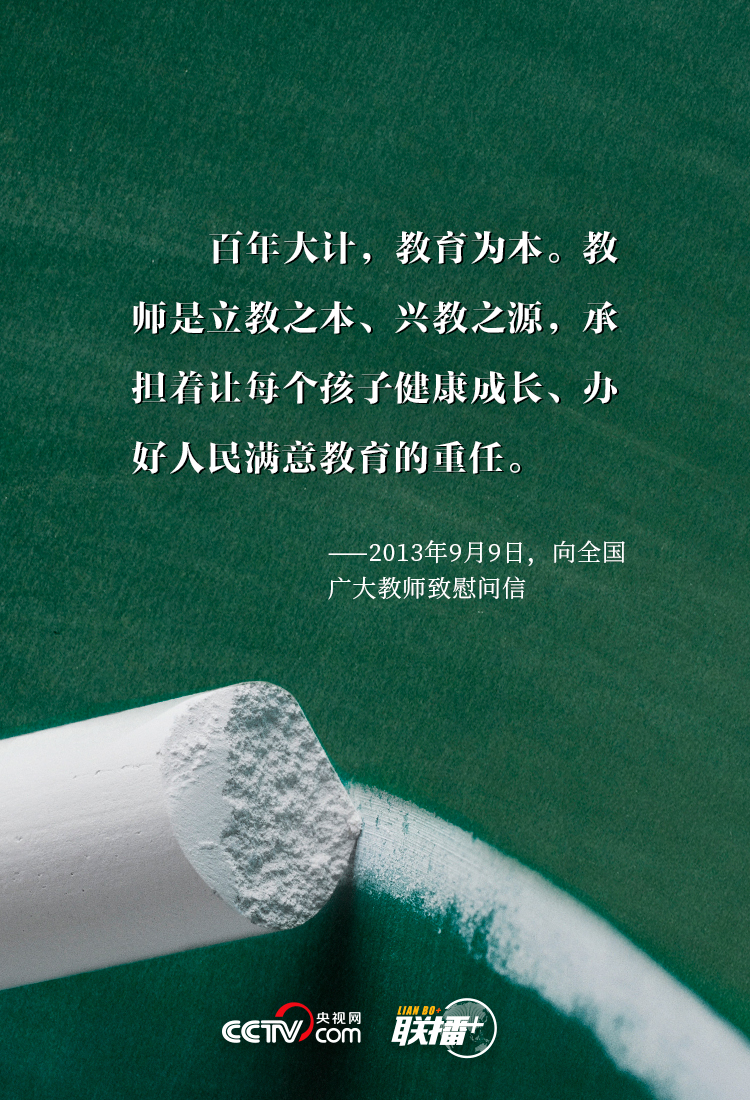 “三寸粉筆,三尺講臺(tái)系國(guó)運(yùn);一顆丹心,一生秉燭鑄民魂。”習(xí)近平總書(shū)記一直以來(lái)高度重視中國(guó)教育發(fā)展和教師工作,身體力行倡導(dǎo)尊師重教,深刻指出“好老師”對(duì)于個(gè)人、集體乃至民族復(fù)興的重要意義,深情表達(dá)對(duì)中華民族“夢(mèng)之隊(duì)”筑夢(mèng)人的殷殷厚望。央視網(wǎng)《聯(lián)播+》特梳理,與您共同學(xué)習(xí)。
