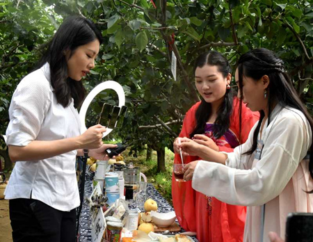 “碭山已經形成了別具特色的電商文化,在碭山,直播已經成為常態化的事情,本土網紅,村級網紅紛紛走上電商直播舞臺,為貧困果農代言,碭山網紅遍地開花!毙炖^勝介紹,僅碭山梨膏在2019年直播活動中單場銷售均超過20萬瓶,銷售額突破600萬元。截至6月底,全縣通過直播銷售碭山水果5000萬斤,網銷額達1.3億元,打造了農產品上行“新引擎”。