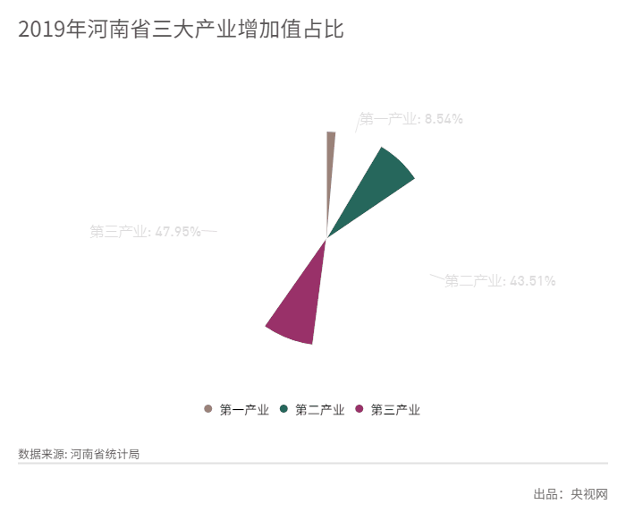 圖二:2019年河南省三大產(chǎn)業(yè)增加值占比