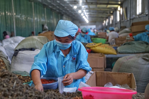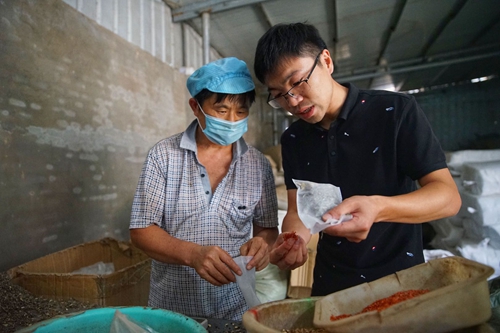 時值白露,在安徽省亳州市譙城區華佗鎮,一處由廢棄廠房改建的扶貧車間里,曾是貧困戶的劉運彬緊張忙碌著,裝袋、計重、打包……連一口水都顧不上喝。