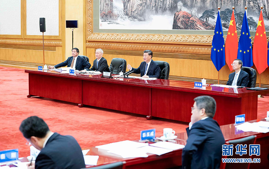 新華社北京9月14日電 國家主席習近平14日晚在北京同歐盟輪值主席國德國總理默克爾、歐洲理事會主席米歇爾、歐盟委員會主席馮德萊恩共同舉行會晤,會晤以視頻方式舉行。中德歐領導人就中歐關系深入交換意見,為下階段中歐關系規劃方向,確定重點領域,一致同意加強溝通協調合作,確保今后中歐之間一系列重大政治議程取得成功,深化互信,實現互利共贏,堅持維護多邊主義,共同應對全球性挑戰,推動中歐關系邁向更高水平。中歐雙方宣布簽署《中歐地理標志協定》,確認加快中歐投資協定談判,實現年內完成談判的目標。中歐決定建立環境與氣候高層對話和數字領域高層對話,打造中歐綠色合作伙伴、數字合作伙伴關系。